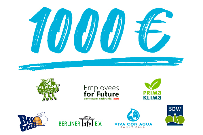 Übrigens: Da 935 € ein ungerader Wert ist, haben wir natürlich auf 1.000 € aufgerundet und spenden die restlichen 65 € selbst an Employees for Future.