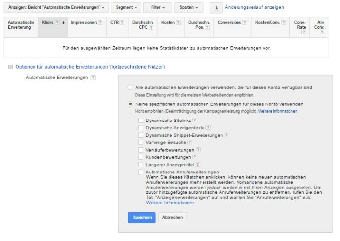 Falls dies nicht gewünscht ist, kann im Untermenü der Anzeigenerweiterung die Automatisierung mit wenigen Klicks  deaktiviert werden: