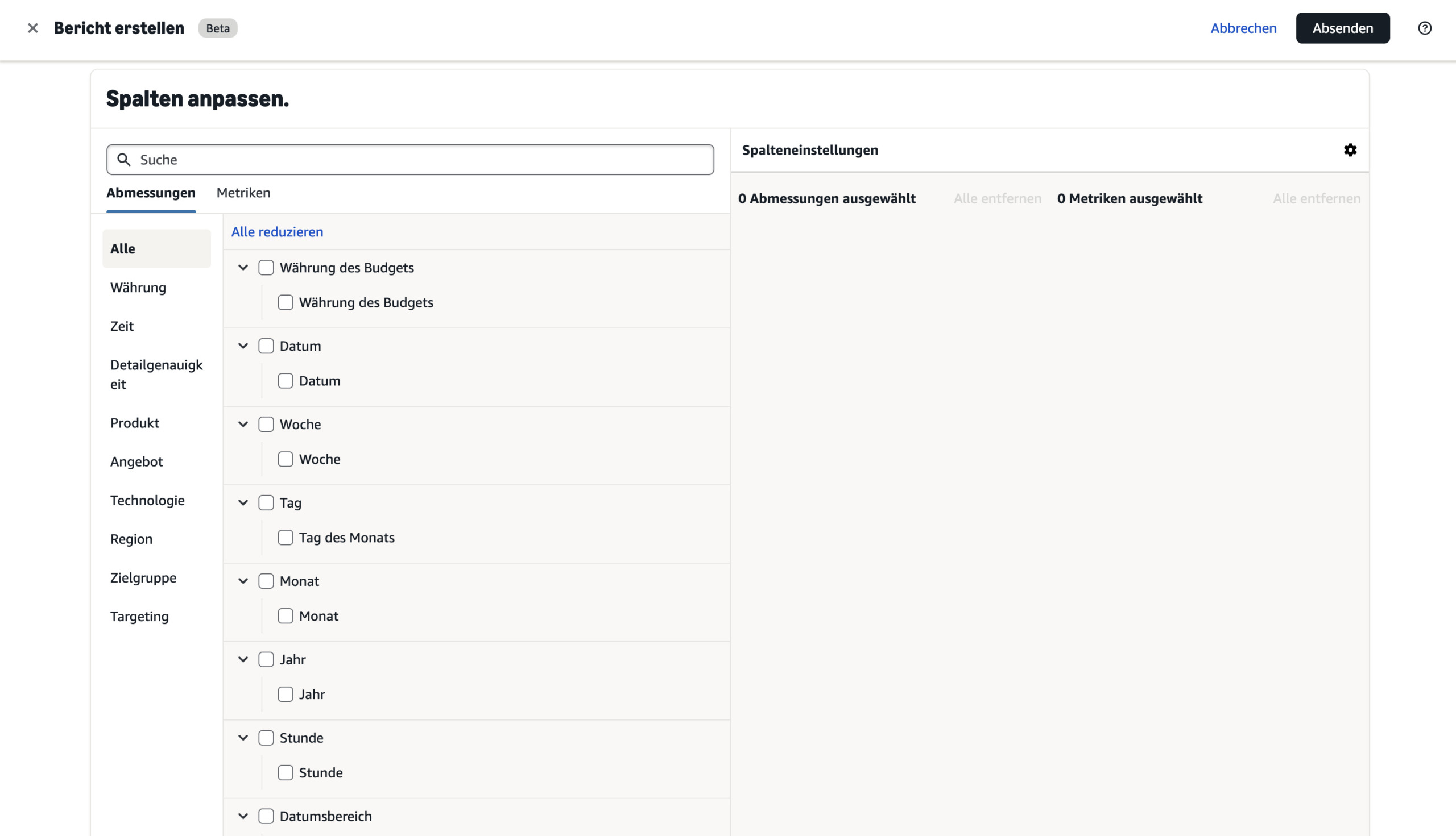 Endlich, endlich, endlich können wir uns eigene Berichte in Amazon-Ads-Accounts erstellen, statt vorgefertigte Berichte zu gesponserten Anzeigen nutzen zu müssen. Die neue Reportingoberfläche ist nämlich bereits live für den deutschsprachigen Markt. Das bietet natürlich deutlich mehr Möglichkeiten und Insights beim Reporting.