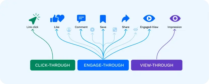 Diese weiteren Arten von Klicks können selbstverständlich auch einen Einfluss auf Conversions haben und werden deshalb, genau wie 5-sekündige Video-Views, nun unter „Engage-Through“-Conversions (bislang: „Engaged View“) gebündelt. Ziel ist es, die Messung im Ads-Manager transparenter zu gestalten und besser zwischen echtem Website-Traffic und reiner Beitragsinteraktion zu unterscheiden.