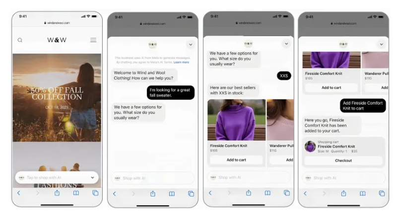 Der virtuelle Assistent kann Kundenfragen beantworten, Produkte empfehlen und Nutzer*innen durch den Kaufprozess begleiten. Er greift dabei auf vorhandene Inhalte wie Produktkataloge und Social-Posts zu und lässt sich ohne Programmierkenntnisse einrichten. Auch in Facebook- und Instagram-Anzeigen soll er künftig integriert werden, sodass Nutzer*innen direkt aus einer Ad heraus mit dem Bot interagieren können.