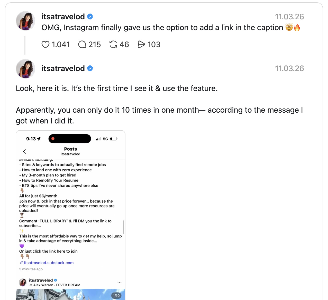 Bei dieser News haben wir ganz kurz gejubelt: Es können nun klickbare Links in Instagram Captions eingefügt werden … Bis wir dann entdeckt haben, dass es sich dabei leider um eine Bezahl-Funktion handelt, die auch noch nicht veröffentlicht wurde. Scheinbar wird dieses neue Feature gerade getestet und von Instagram-Nutzer*innen entdeckt: