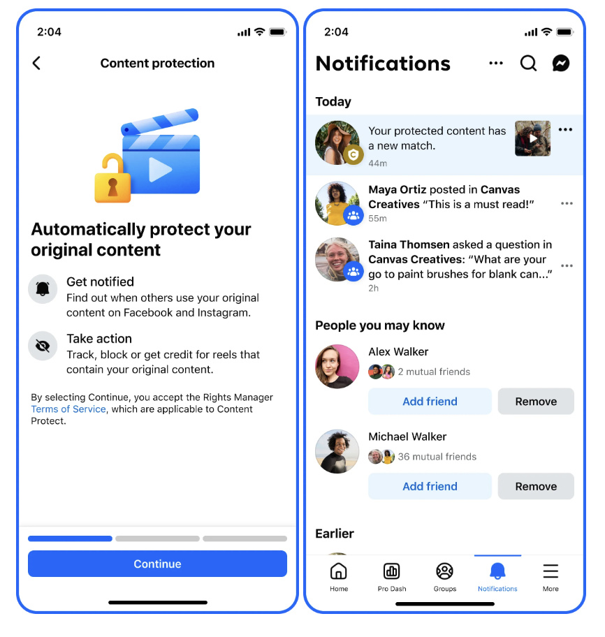 Tolle News für Creator*innen: Meta schafft mit dem neuen Content Protection Tool eine Möglichkeit, sich vor Content-Klau zu schützen. Das Tool schützt eure Reels, indem es euch informiert, sollten es Kopien eures Contents geben. Außerdem unterstützt euch das Tool dabei, Schritte gegen die Fake-Profile einzuleiten. Spannend: Sollte euch das Tool von euch kopierten Content anzeigen, könnt ihr den Content einerseits blocken und markieren oder mit einem „Original by“-Link noch mehr Views für euren eigenen Original-Content produzieren. Hier gibt es mehr Infos zu dem neuen Content Protection Tool.