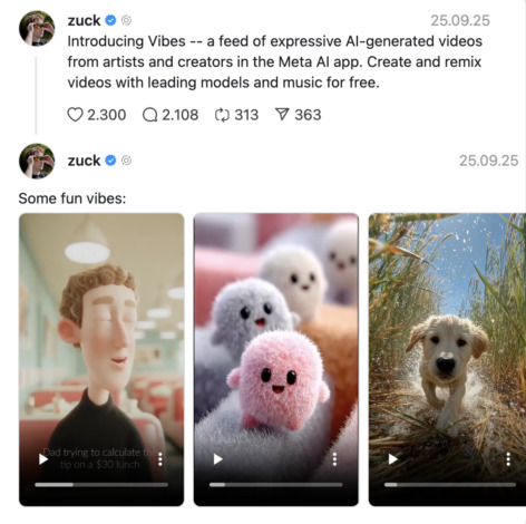 Jetzt ist sie auch in Europa verfügbar: die neue Meta AI App, inklusive dem neuen „Vibes“ Feed. Dort werden euch jede Menge KI-Videos ausgespielt (solltet ihr das sehen wollen), ihr könnt aber auch eigenen KI-Content kreieren und mit anderen teilen – von dort aus außerdem auch bei Facebook und Instagram als Stories und Reels. AI Slop ahoi … Habt ihr die App bereits ausprobiert?