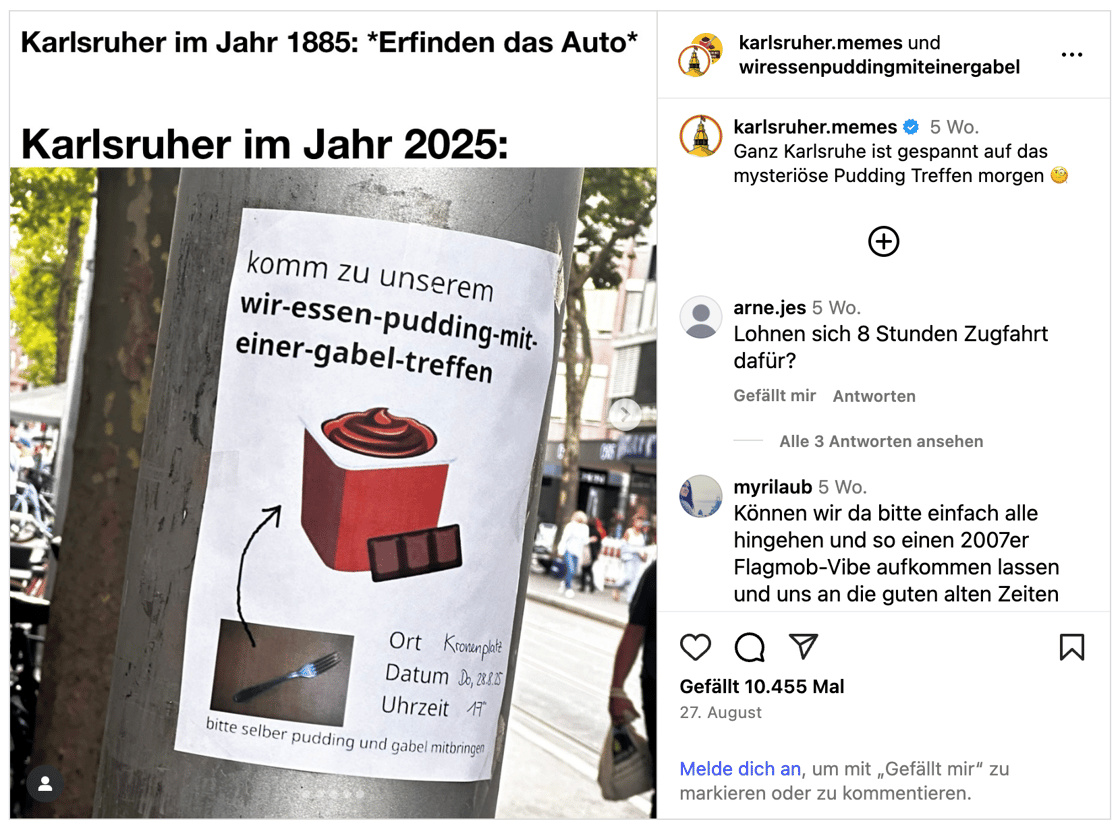 Erfunden haben es offenbar die Karlsruher, Startschuss war am 28. August und seitdem geht der Trend viral und erobert weitere deutsche Städte. Warum genau? Wissen wir auch nicht! Aber ihr wisst jetzt genug, um wissend zu nicken, wenn die Keywords „Pudding“ und „Gabel“ in der Büroküche fallen. Bitte, sehr gern geschehen!