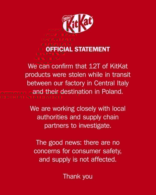 Habt ihr nach dieser Woche auch Lust auf KitKat? Der Diebstahl von über 400.000 Riegeln in einem LKW ist zum viralen Meme geworden – und zahlreiche Brands sind aufgesprungen. Jede Menge kostenlose Aufmerksamkeit also für KitKat selbst.
