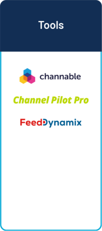 Tool-agnostisch und haben tiefgehende Expertise mit allen führenden Feed-Management-Engines wie Channable, ChannelPilot und Feed Dynamix. Wir sind an keinen Anbieter gebunden und empfehlen immer die Lösung, die technisch und wirtschaftlich am besten zu deinen Zielen und deiner IT-Infrastruktur passt. Bei Bedarf begleiten wir auch einen reibungslosen Tool-Wechsel.